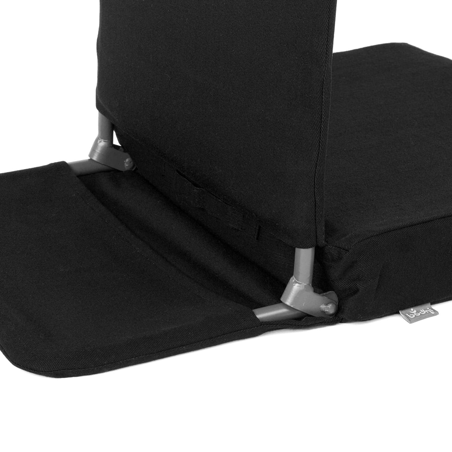 La sedia è veloce da montare e lo schienale imbottito offre un comfort extra quando si è seduti sul pavimento. Questa versione pieghevole consente alla sedia di piegarsi e trasportarla rapidamente. Quindi è particolarmente adatto quando si frequentano ritiri e seminari di meditazione.
